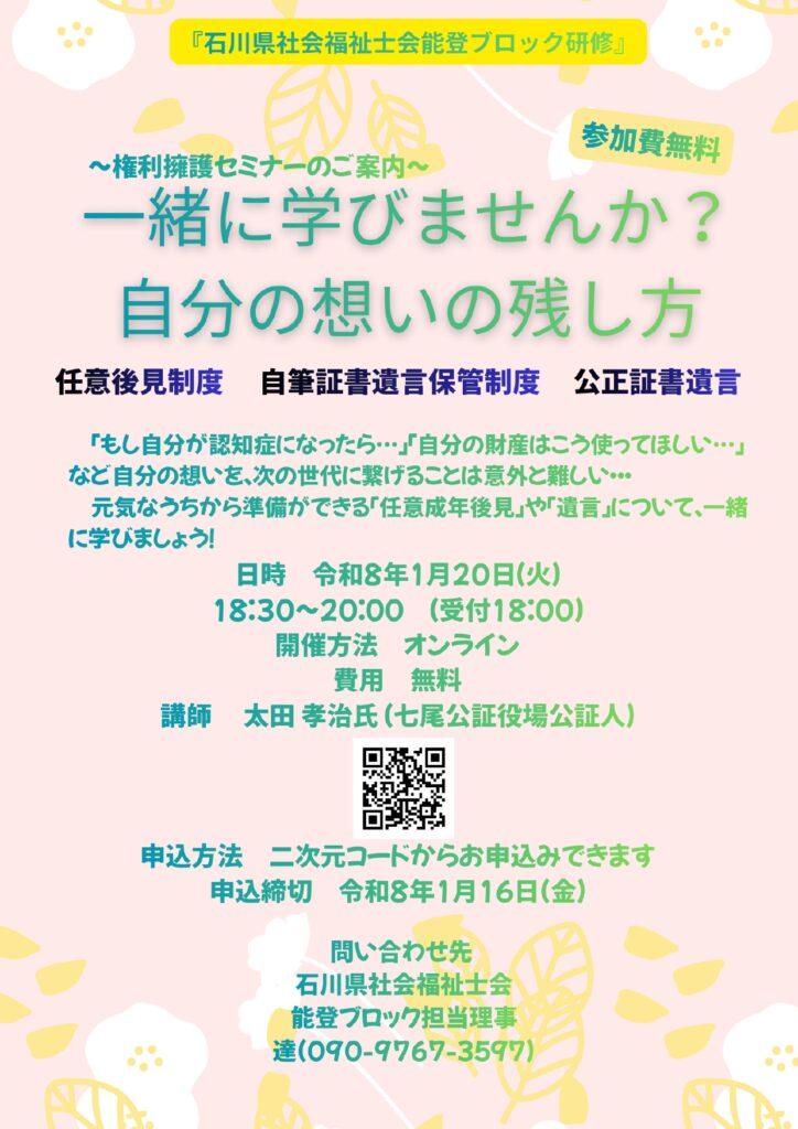 2025年度 ぱあとなあ石川 名簿登録研修開催要項